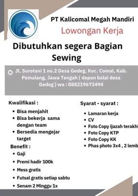 Kami membuka kesempatan bagi Anda yang terampil dan teliti untuk bergabung bersama tim produksi kami sebagai Sewing (Penjahit). Tugas utama mencakup menjahit bagian-bagian pakaian sesuai standar kualitas dan target produksi yang ditentukan.